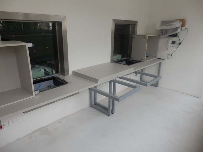 Realizace České ambasády v Londýně 2016.-2017 - dodávka kuchyní, vestavěných skříní, přepážková pracoviště,